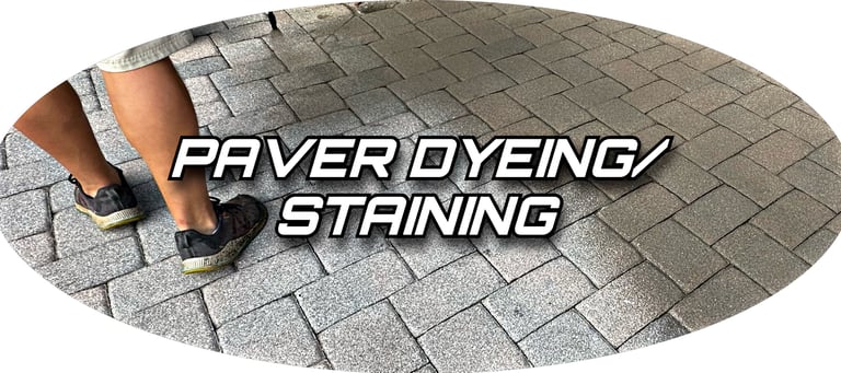 First we prep the surface by pressure washing off any dirt, mold, and weeds. A stain of your preference is then mixed up then applied with a sprayer to ensure an even coverage and consistency then allowed to dry for about an hour. Afterward we may do touch up applications for areas your brick seems to absorb the stain the most to ensure an even coat. We recommend sealing your newly stained pavers afterward to protect the integrity of the dye from harsh elements and for a longer lasting coat. Protect your investment by sealing your pavers regularly.